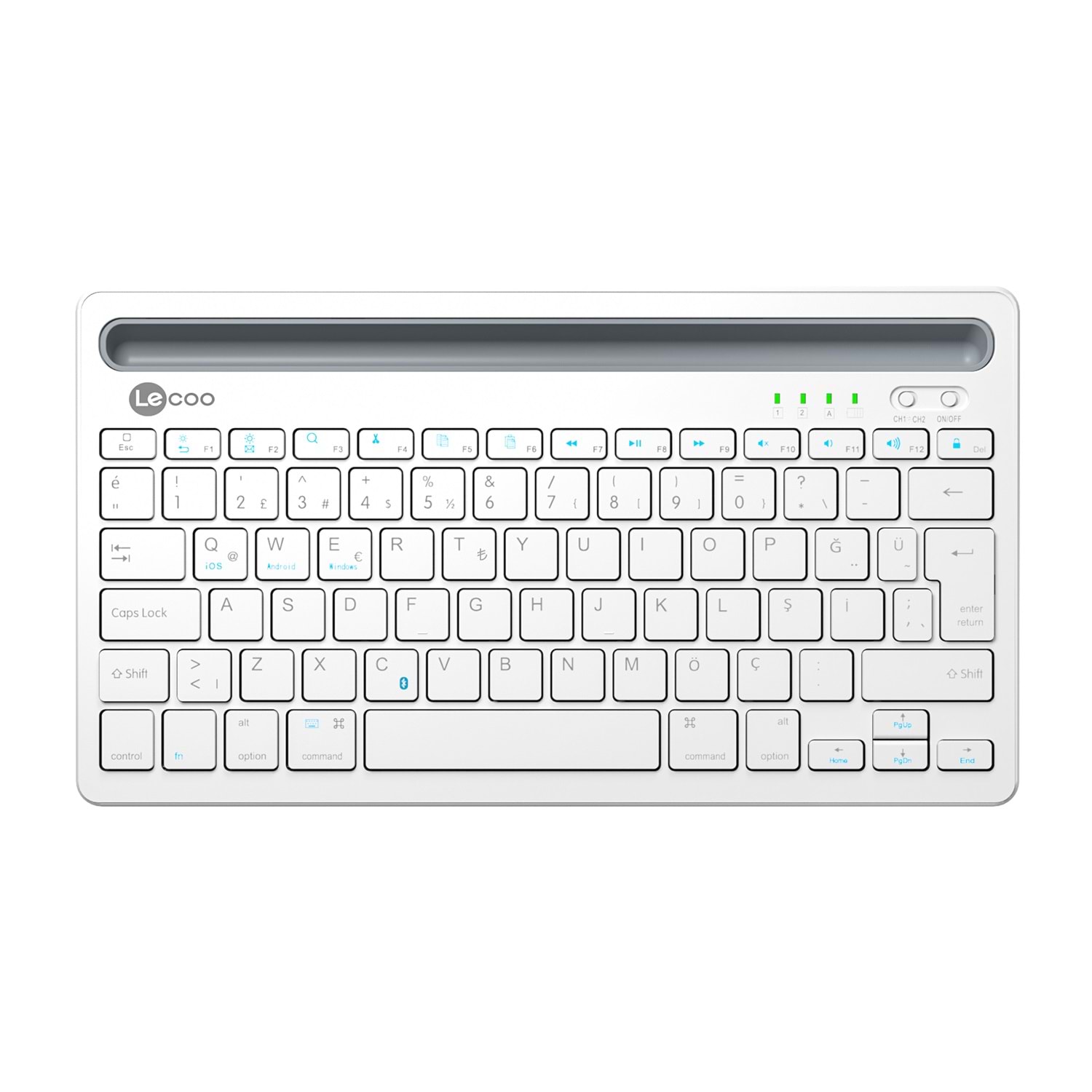 Lecoo BK100, ultra ince şık bir klavyedir ve iPad, iPhone, dizüstü bilgisayar, PC, tablet, akıllı telefon ile uyumludur. Telefonunuzu veya tabletinizi tutmak için üst kısmında bir tutucuya sahiptir. Bu bölme, telefon ve tabletlerinizi doğru açıda tutarak yazı yazarken daha rahat okumanıza olanak sağlar veya isterseniz bir stand görevi görebilir.
