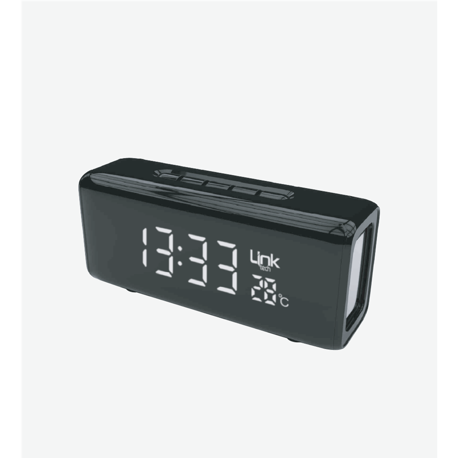 Hoparlörün ön tarafında hoş bir dijital saat ve çalar saat