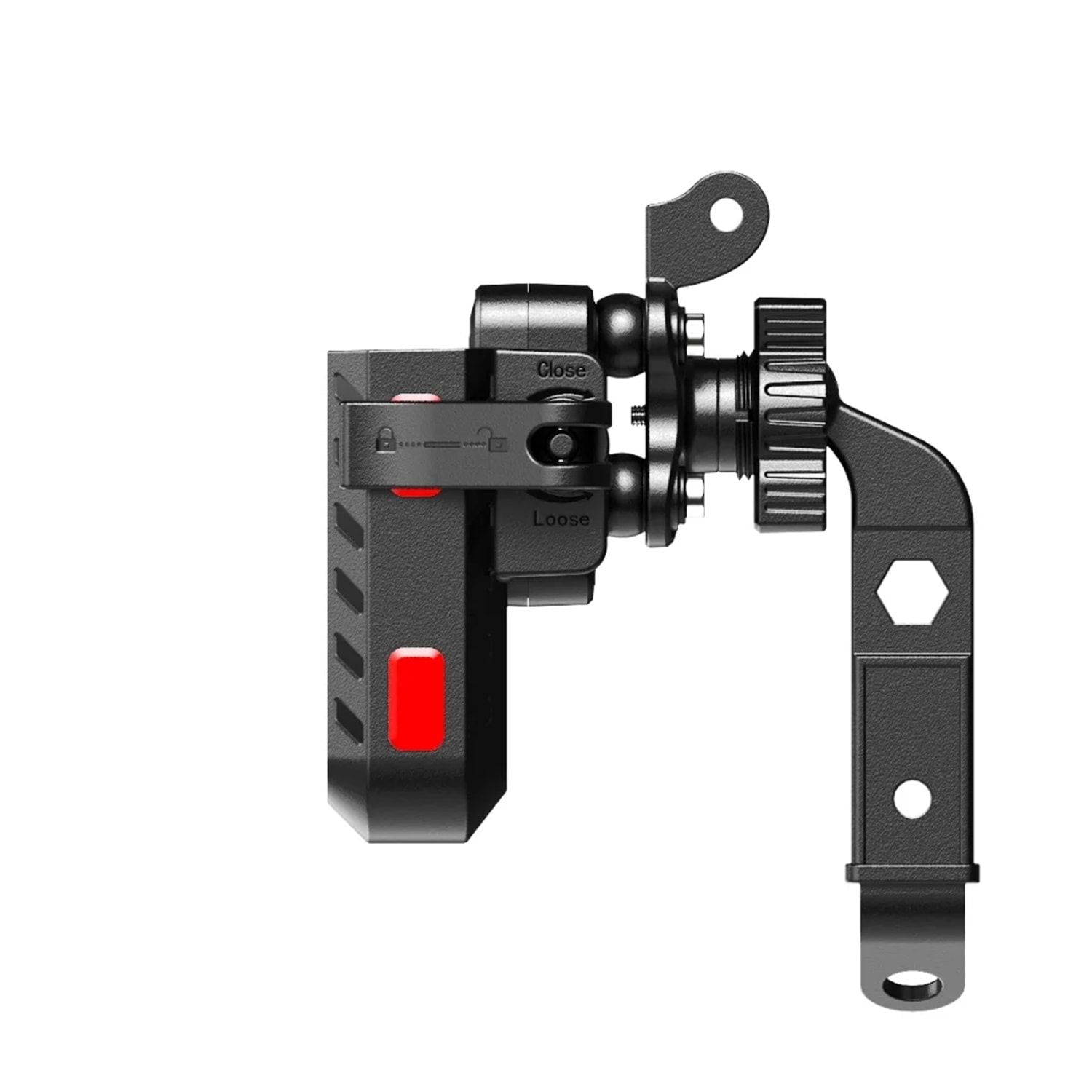 Kilit düğmesiyle tek dokunuşta telefonunuzu güvenle yerleştirip çıkarabilirsiniz. Özellikle sürüş sırasında pratik kullanım sunar. Yan taraftaki güvenlik kilidi, cihazınızın zorlu yol koşullarında bile düşmesini engeller.
